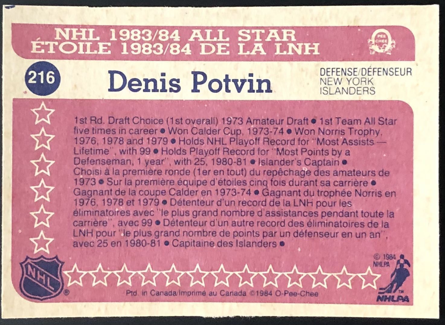 Card #216 NHL, hockey, OPC, vintage, hall of fame