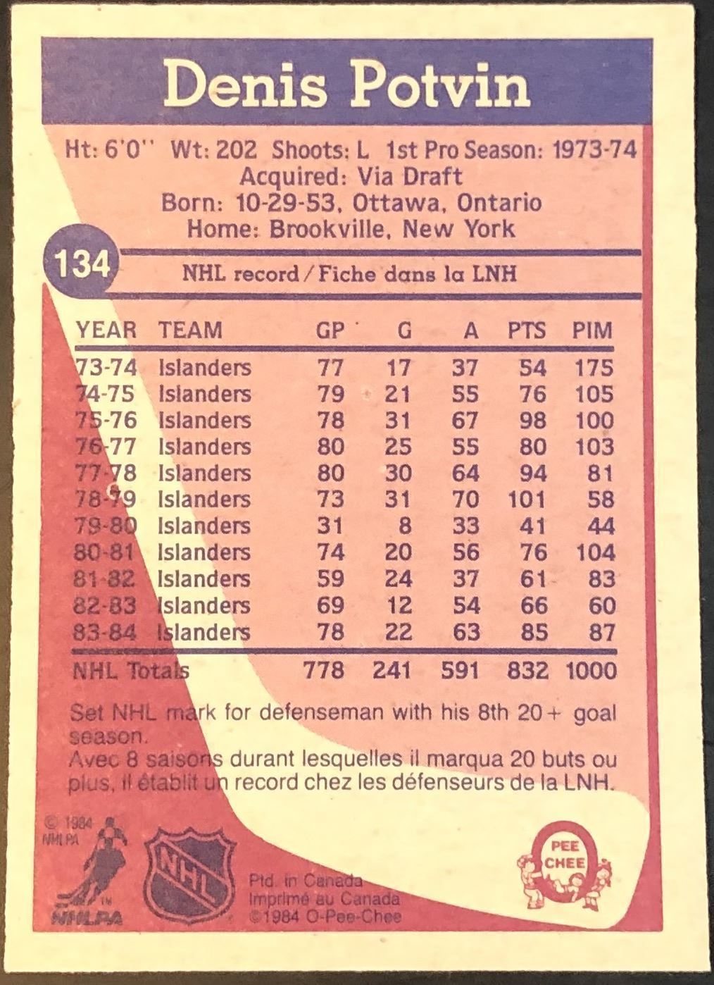 Card #134 NHL, hockey, vintage, hall of fame, OPC
