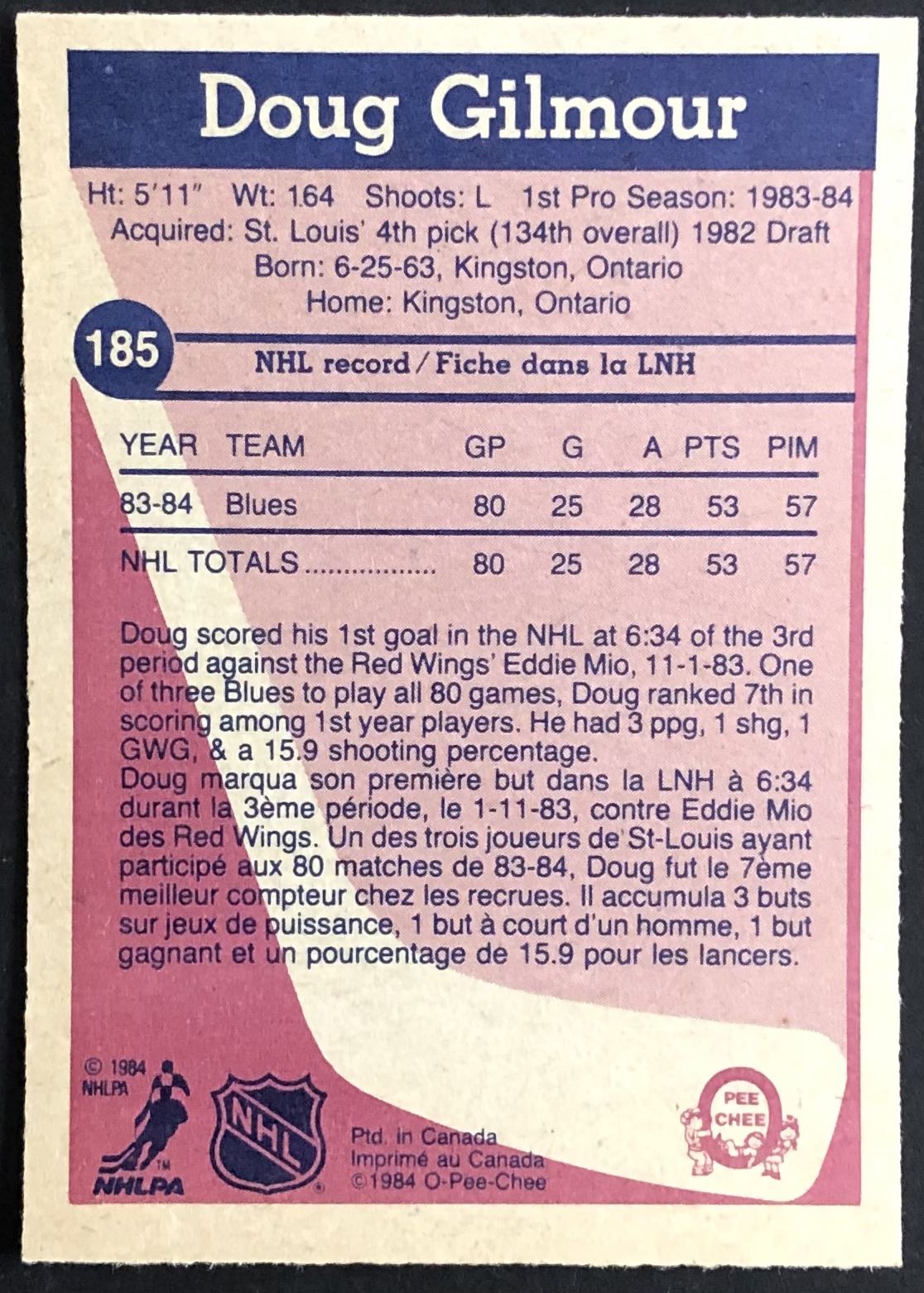 Card #185 NHL, hockey, vintage, hall of fame, OPC