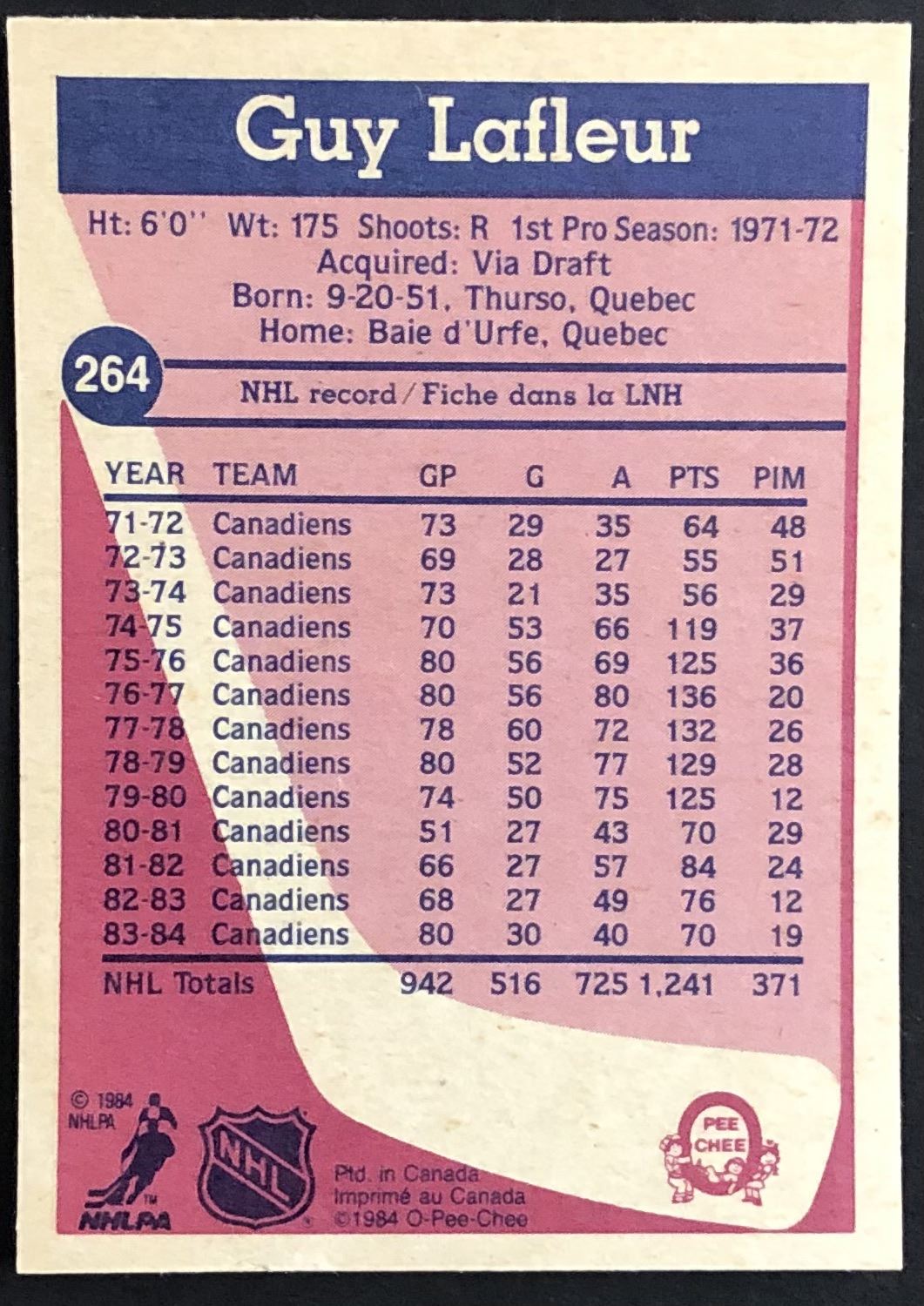 Card #264 NHL, hockey, vintage, hall of fame, OPC