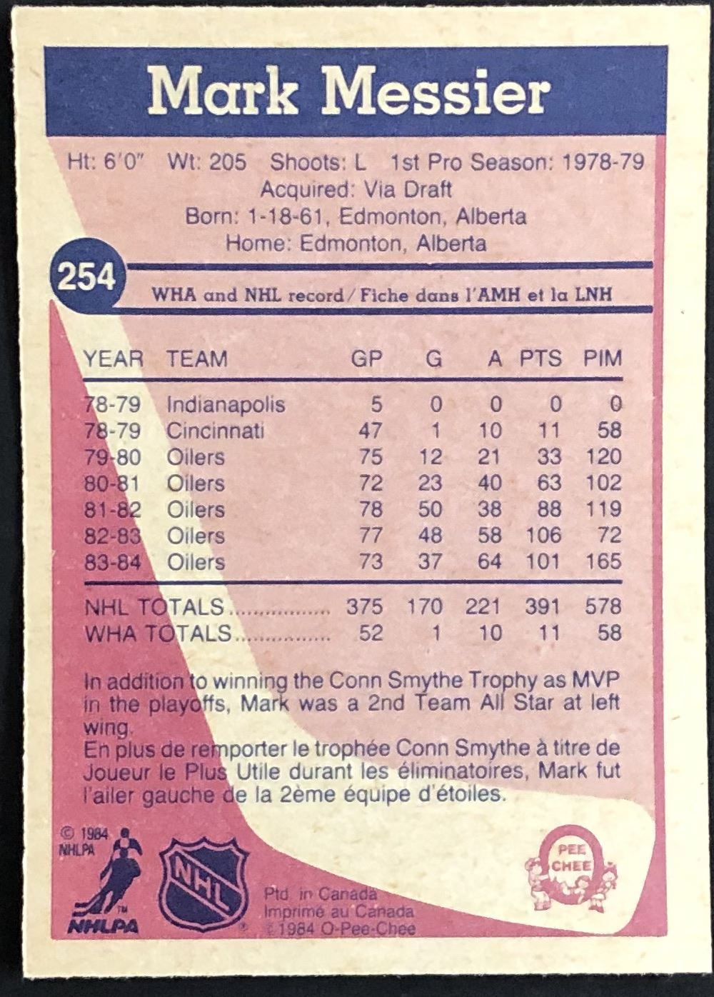 Card #254 NHL, hockey, vintage, hall of fame, OPC