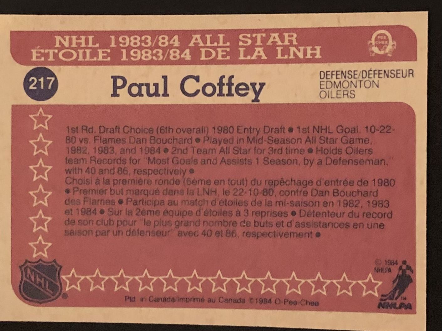 Card #217 hockey, vintage, hall of fame