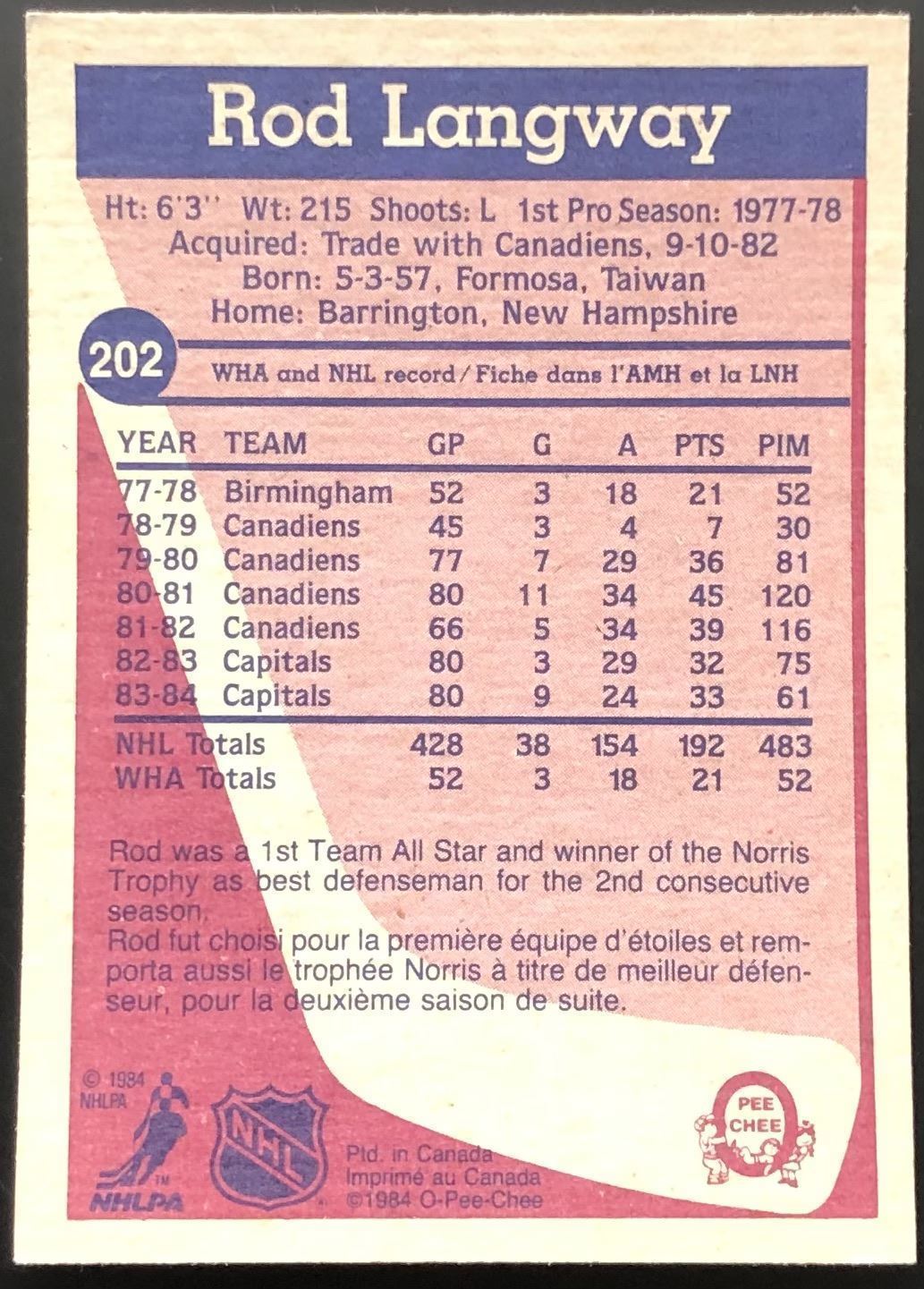 Card #202 NHL, hockey, vintage, OPC, hall of fame