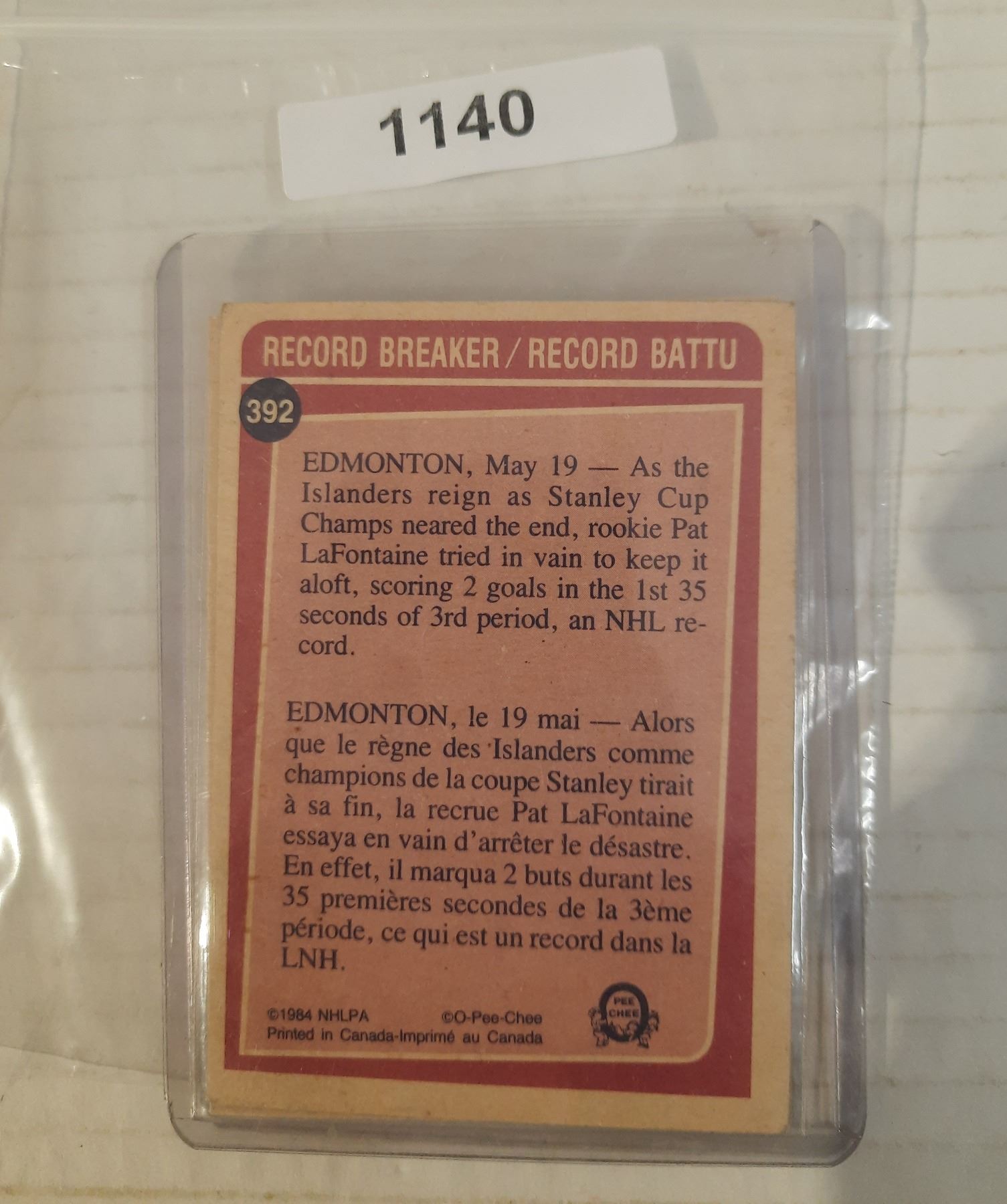 1984-85 OPC PAT LaFONTAINE SETS SCORING RECORD #392