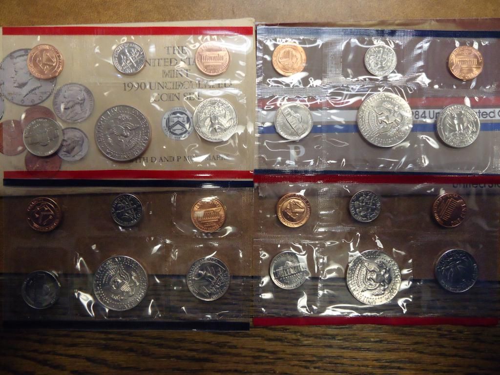 1984 & 90 US MINT SETS (UNC) P/D (WITH ENVELOPES)
