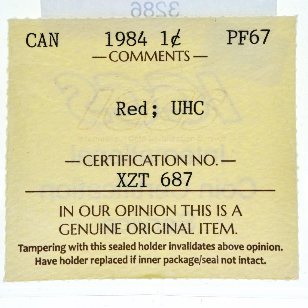 1984 Canada 1 Cent. PF67. Red; UHC. ICCS.