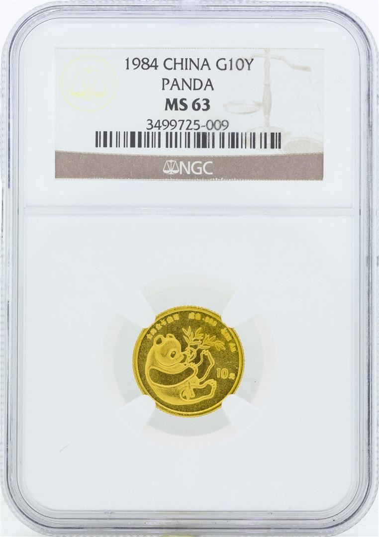 One 1984 China 10 Yuan Gold Panda Coin NGC MS63. NGC Certified.