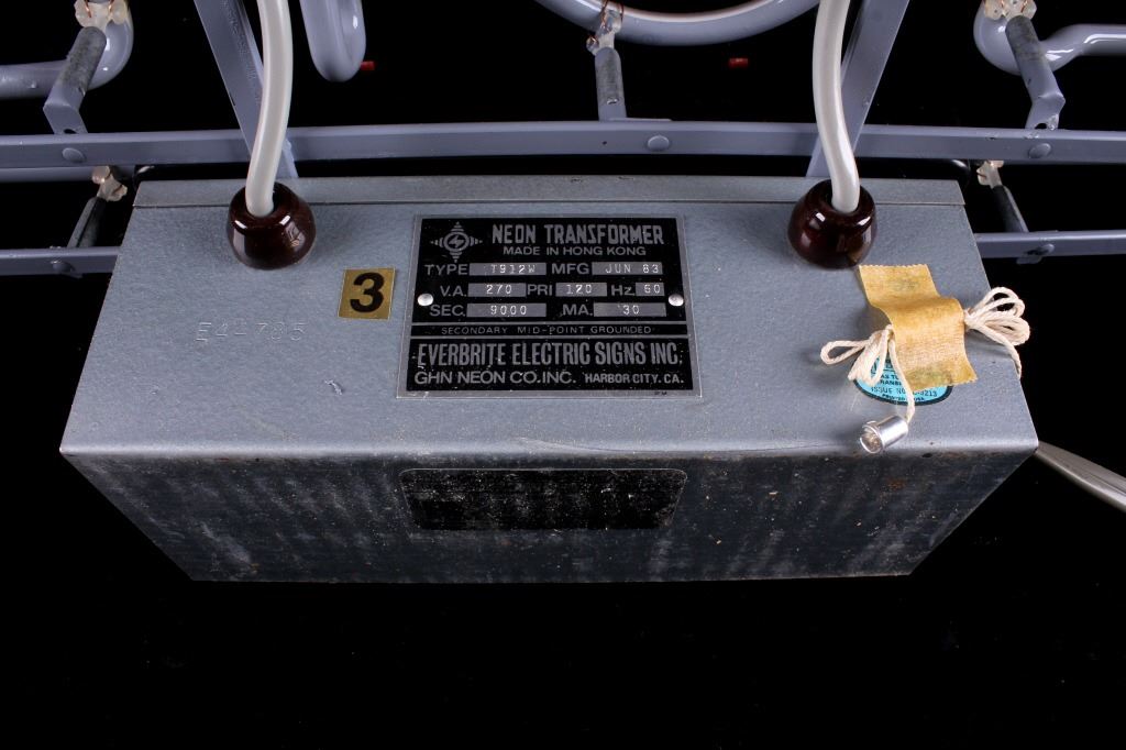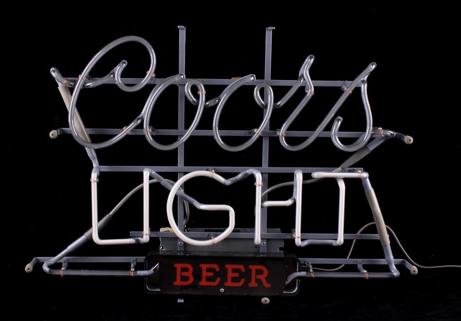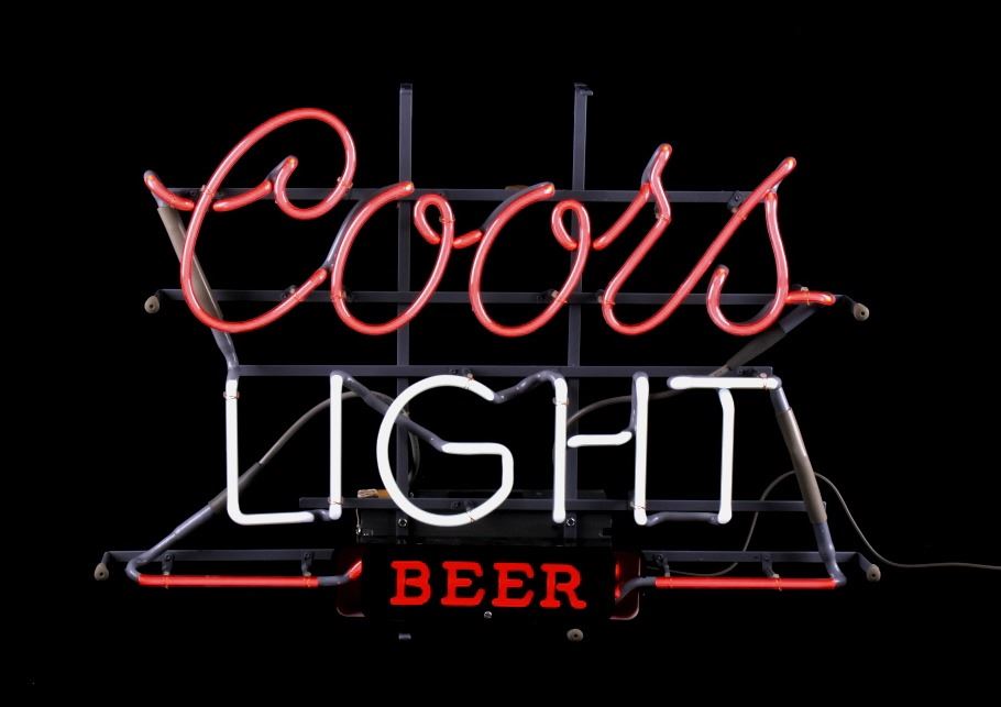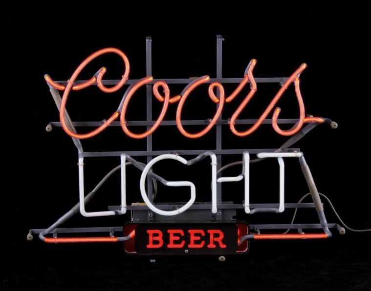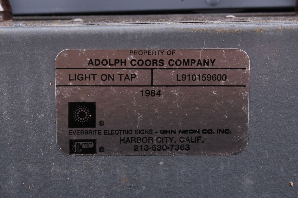 For your consideration is this 1984 Coors Light Beer, neon advertisement sign. The sign shows iconic barroom neon construction with 'Coors Light' lighting up with neon lights. This sign is from Everbrite Electric Signs Inc. and shows its neon transformer center bottom on the back of the frame. The condition of this sign is good; it is in like-new, out of the box condition with no obvious signs of damage. The advertisement has been plugged in and works as advertised. The measurements of this Coors Light Beer neon sign are 19" x 27 1/4" x 6".