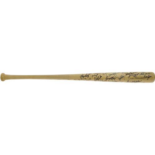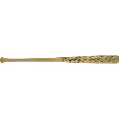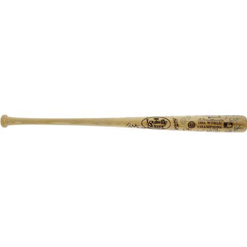 <B>1984 Detroit Tigers Team Signed Bat.</B></I> With the current roster looking like the best Detroit team to take the field since the 1984 squad, now is the perfect time to remember the last World Championship team to call the Motor City home. We find a full roster checking in on this specially crafted Louisville Slugger, with over thirty all but uniformly perfect sharpie autographs from the likes of Hall of Fame manager Anderson, Trammell, Lemon, Whitaker, Bergman, Gibson and Parrish. A few (none listed) have very minor imperfections to the marker, but the bat presents as essentially Mint overall. <I>LOA from PSA/DNA.</B></I>