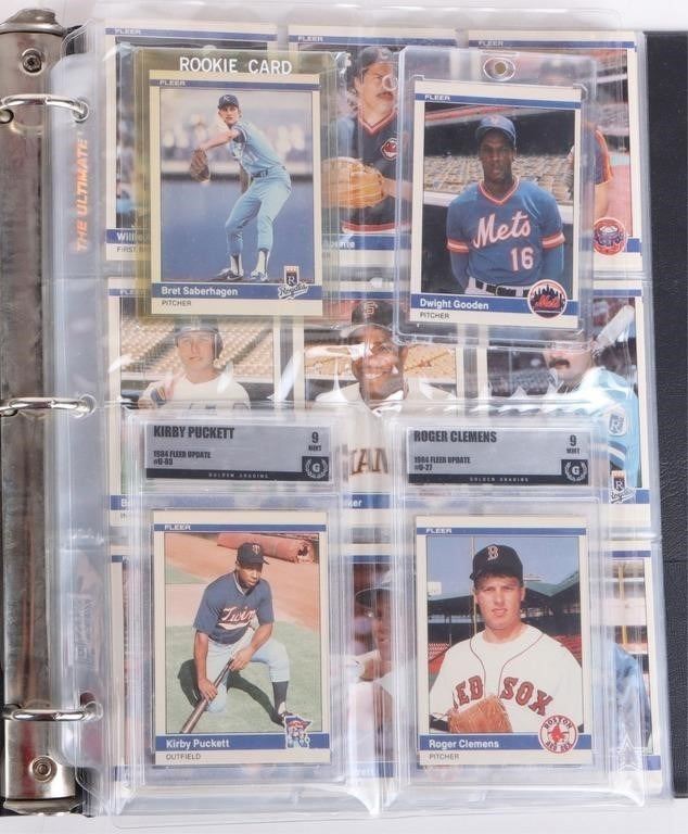 1984 Fleer Update Baseball complete set. Highlights to include #U-27 Roger Clemens HOF Rookie Card GG graded 9 Mint, one #U-93 Kirby Puckett HOF Rookie Card GG graded 9 Mint, #U-43 Dwight Gooden Rookie Card, #U-103 Bret Saberhagen Rookie Card and more.