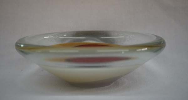 June 1984 Hand Blown Art Glass Dish by Weisbad, measures 1.5''H x 5''W, etched signature on bottom