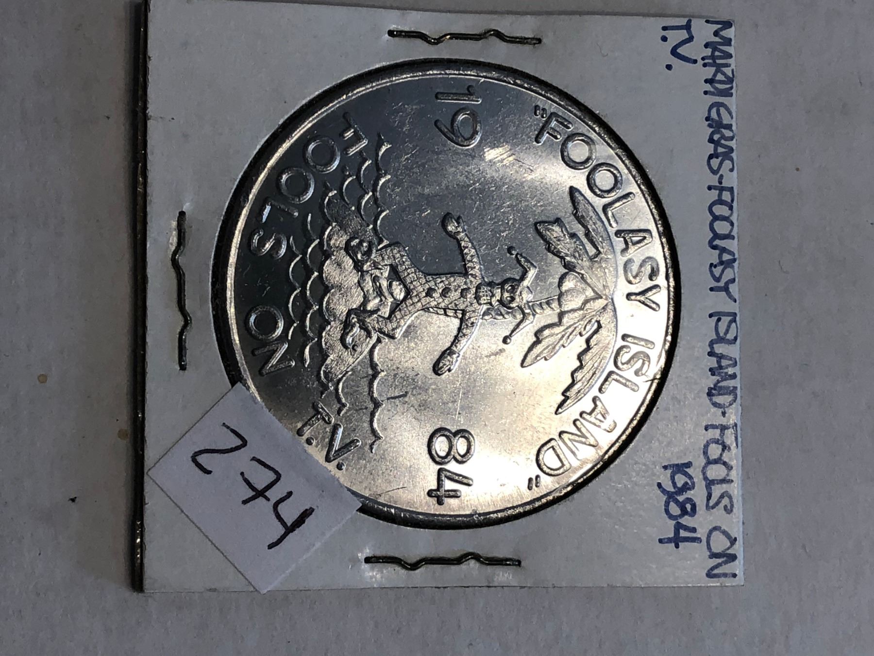 1984 Mardi Gras FOOLASY ISLAND Tafluma Marching Club Coin