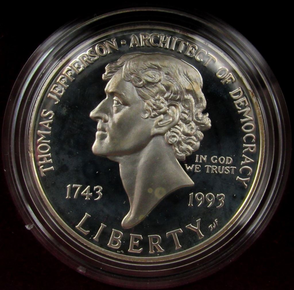 1993 JEFFERSON PROOF SILVER DOLLAR NO COA - ORIGINAL BOXES. Live Online Auctions Weekly!