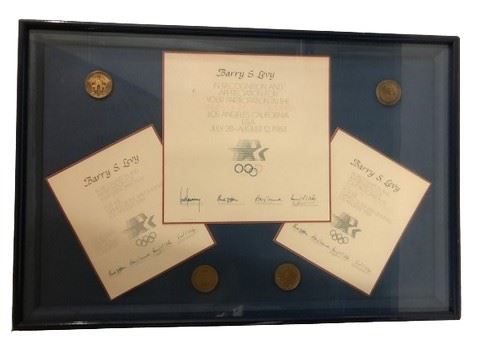 1984 Olympic Games Official Certificate of Appreciation & Bronze Medals Framed