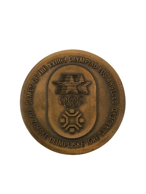 1984 Olympics double sided, commemorative bronze medallion. 3” diameter. 1/4” thickness.
