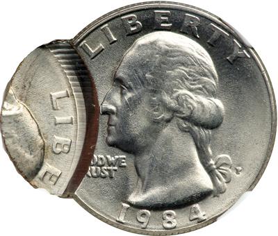 1984-P Double Struck 2nd Strike 75% Off Center. NGC graded Mint Error MS-62.