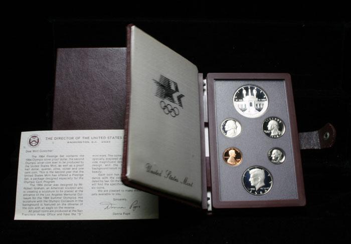 Housed in a beautiful Leather Binder, this set includes the 90% silver "Gateway to the Olympic Coliseum" Olympic coin. Very difficult set to Locate. Note* The silver Dollar alone has .7736 Oz. of pure silver and Silver is over $46/Ounce. Estimated Value $90