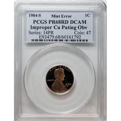 <B>1984-S 1C Lincoln Cent--Improper Copper Plating Obverse--PR68 Deep Cameo PCGS.</B></I> <BR><BR><b>Shipping:</b> Coins & Currency (<a target="_blank" href="http://www.heritageauctions.com/common/shipping.php">view shipping information</a>)