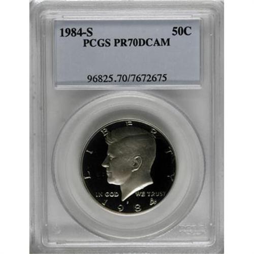 <B>1984-S 50C PR70 Deep Cameo PCGS.</B></I> PCGS Population (76/0). NGC Census: (4/0). Numismedia Wsl. Price for NGC/PCGS coin in PR70: $400. (#96825)<BR><BR><b>Shipping:</b> Coins & Currency (<a target="_blank" href="http://www.heritageauctions.com/common/shipping.php">view shipping information</a>)