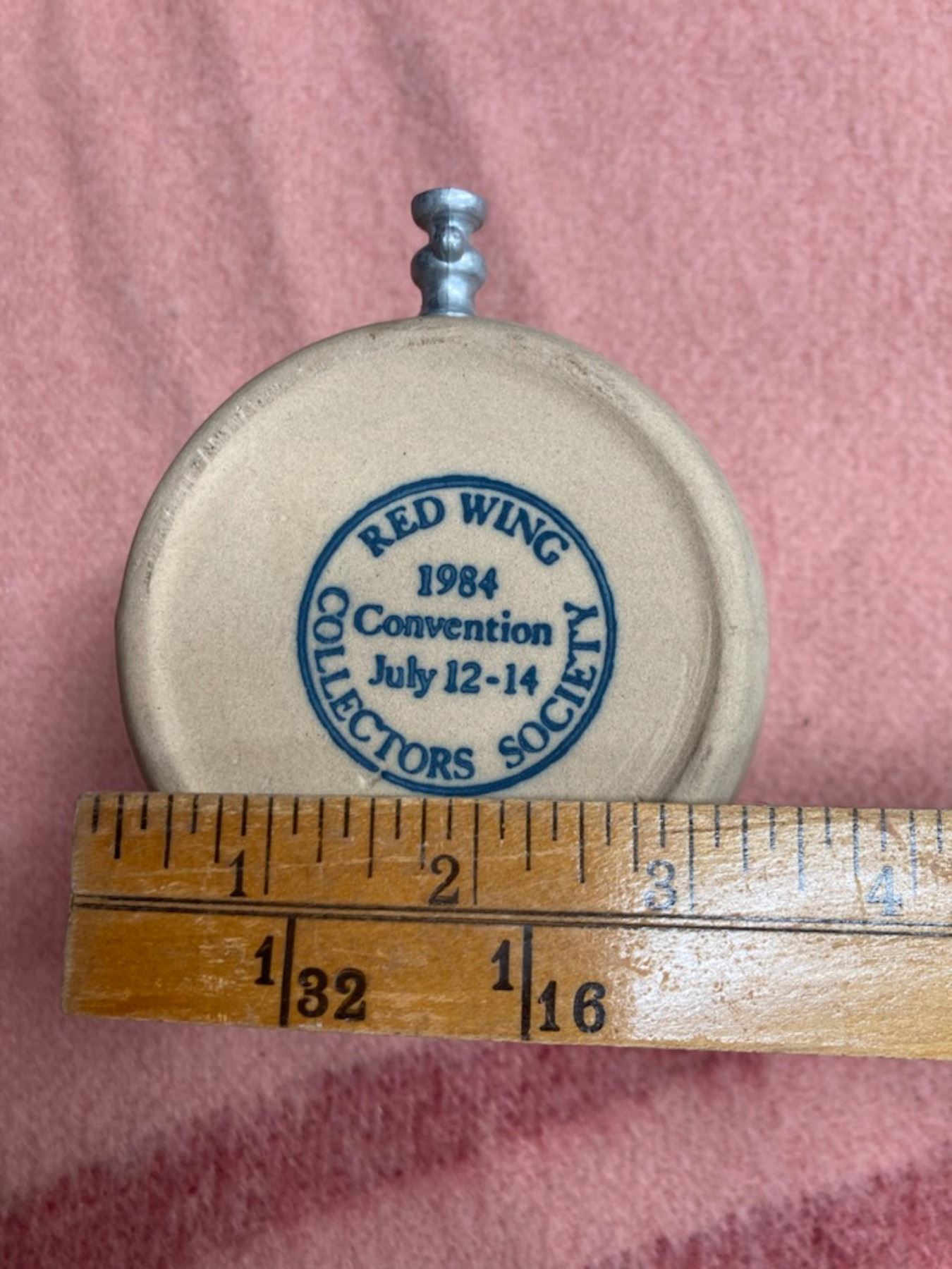 APPROXIMATELY 3" IN DIAMETER. RED WING COLLECTOR SOCIETY COMMEMORATIVE CROCK WITH LID. GOOD CONDITION WITH NO FLAWS. COMES WITH PAPERWORK.