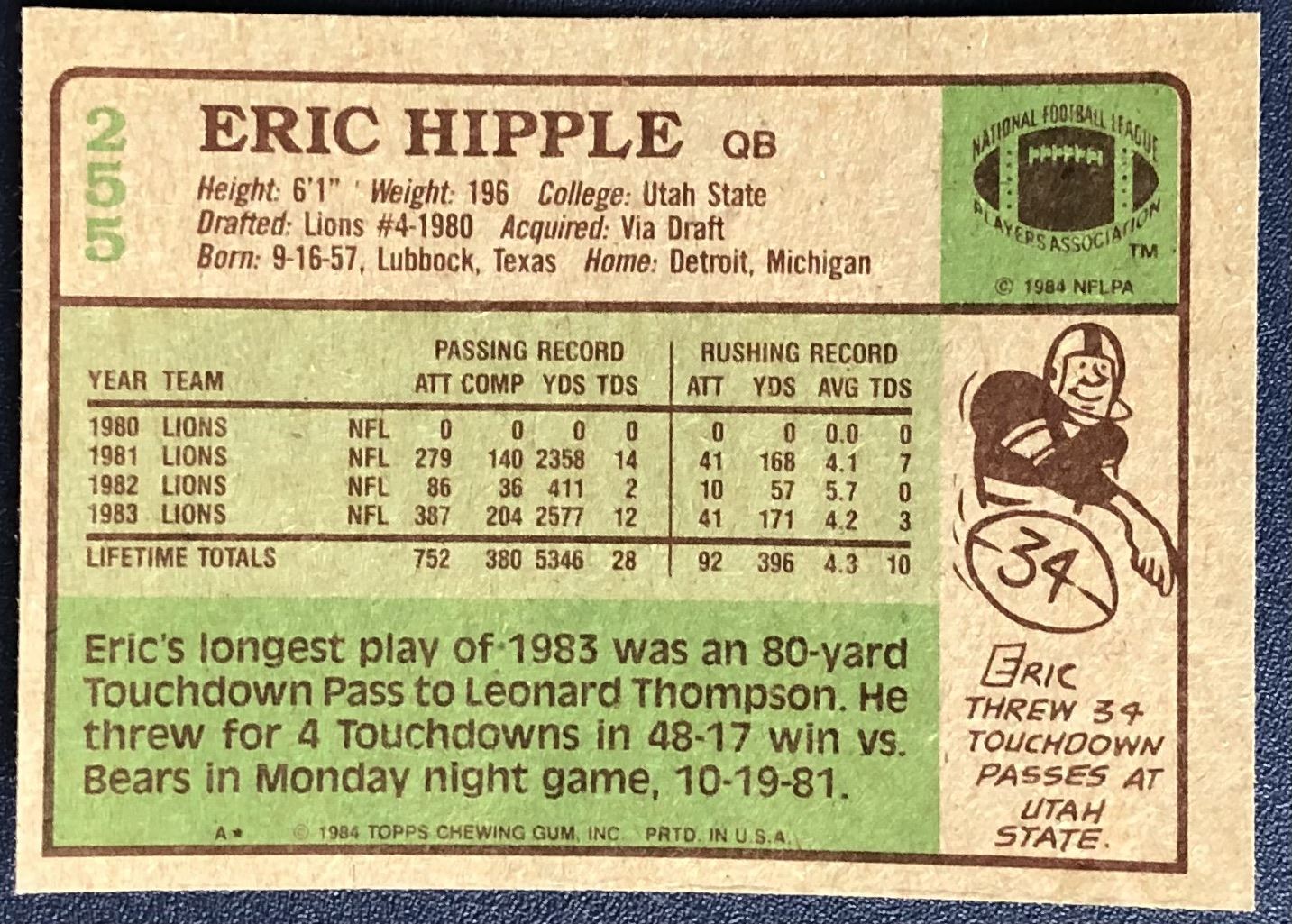 Card #255 NFL, football, vintage