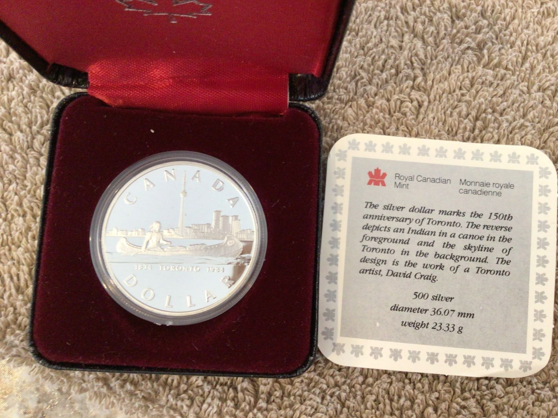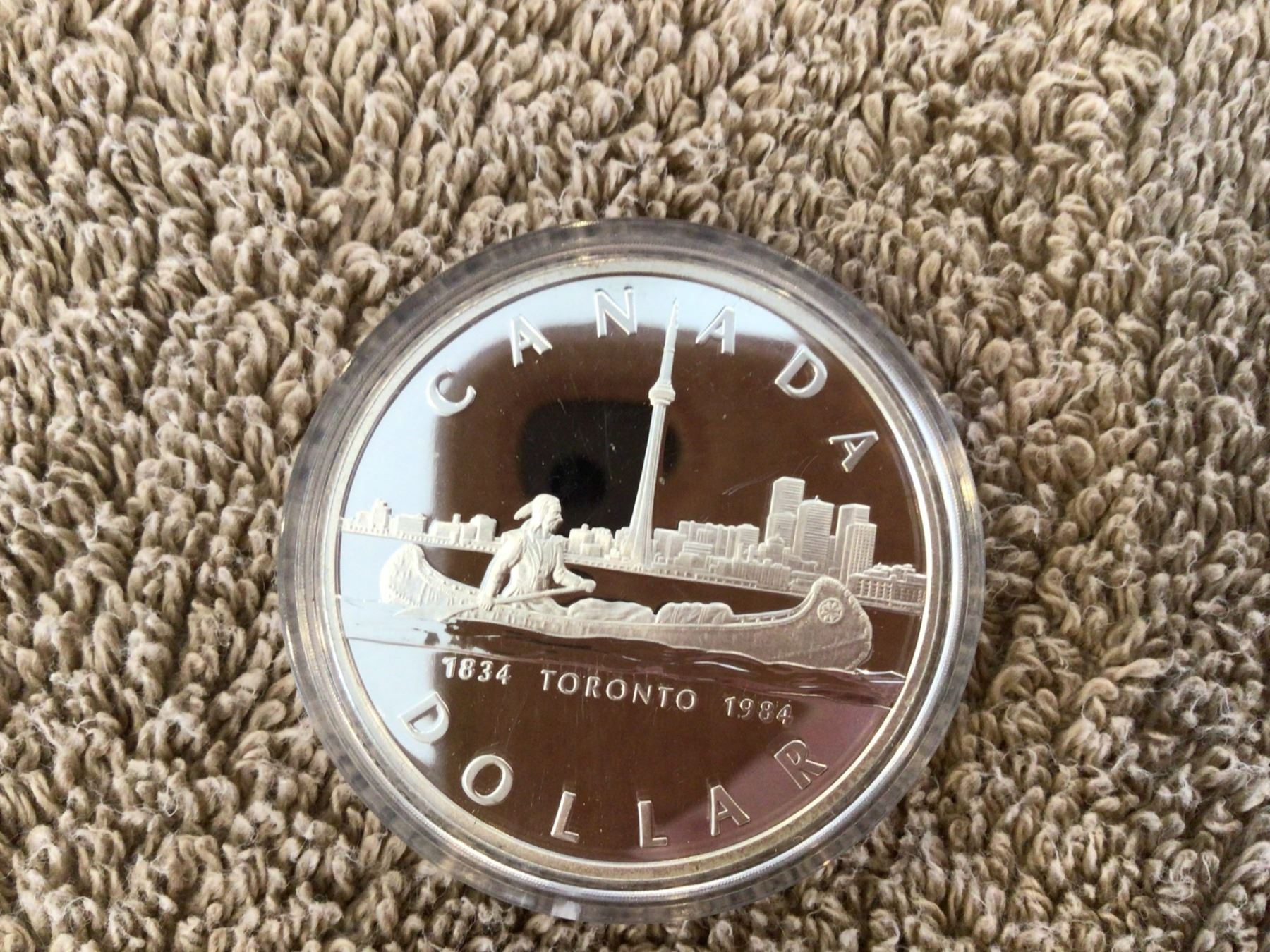 1984 Toronto Centennial silver proof dollar coin with case and COA. RCM