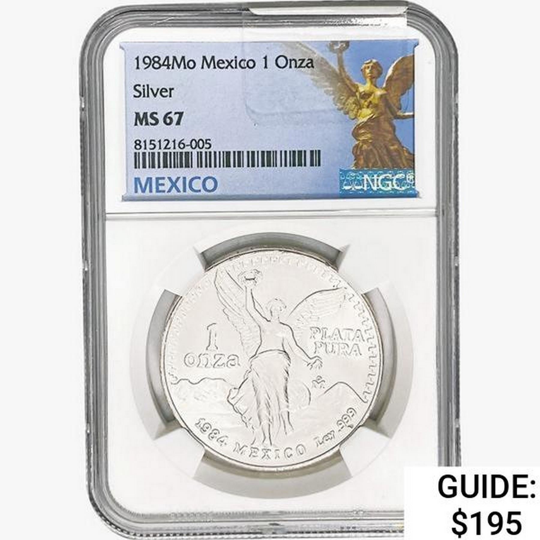 1984Mo 1oz. Silver Mexicanos Onza NGC MS67