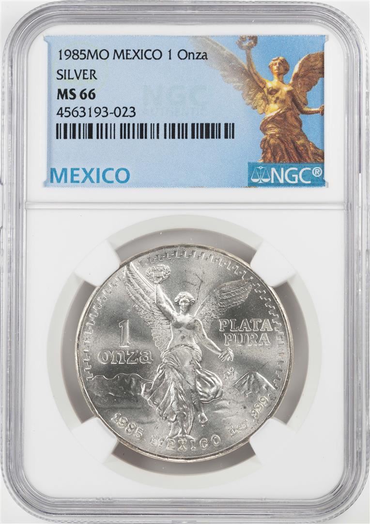 One 1984Mo Mexico 1 Onza Libertad Silver Coin NGC MS66. NGC Certified.