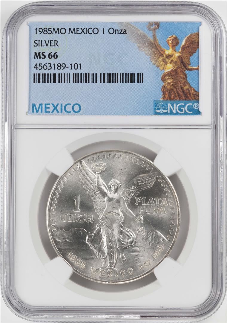 One 1984Mo Mexico 1 Onza Libertad Silver Coin NGC MS66. NGC Certified.