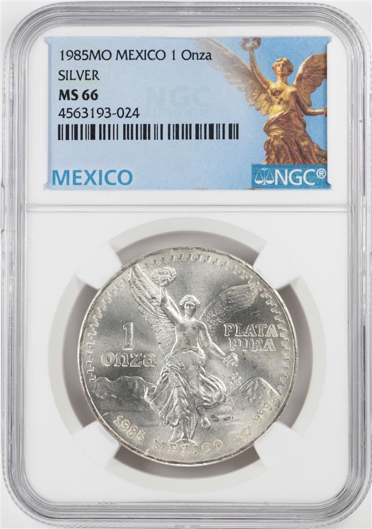 One 1984Mo Mexico 1 Onza Libertad Silver Coin NGC MS66. NGC Certified.
