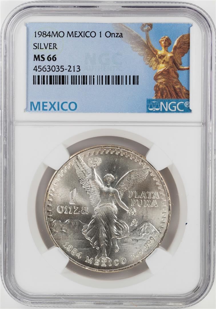 One 1984Mo Mexico 1 Onza Libertad Silver Coin NGC MS66. NGC Certified.