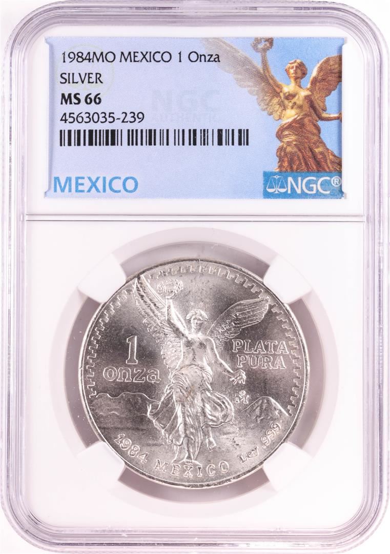 One 1984Mo Mexico 1 Onza Libertad Silver Coin NGC MS66. NGC Certified.