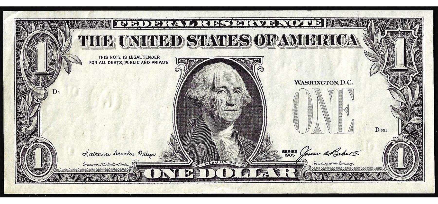 One 1985 $1 Federal Reserve Missing Third Print ERROR Note.