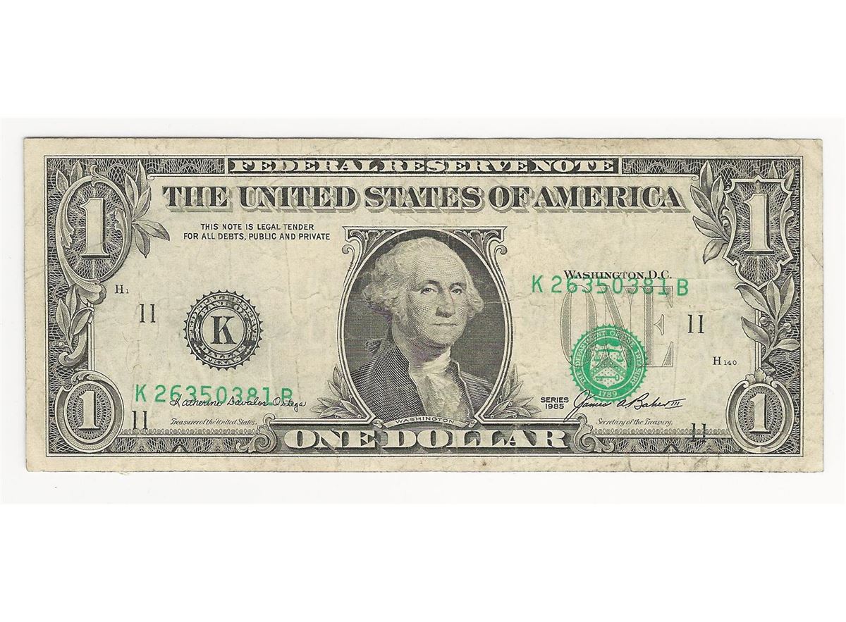 One 1985 $1 Federal Reserve Note ERROR Misalignment.