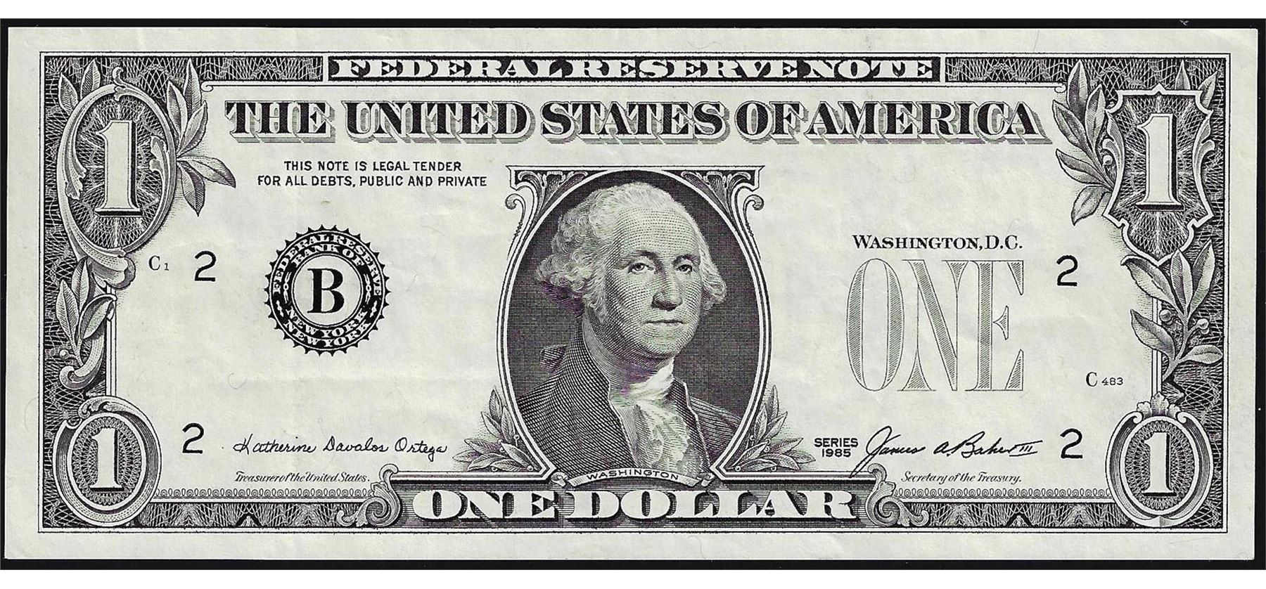 One 1985 $1 Federal Reserve Note ERROR Missing Print.