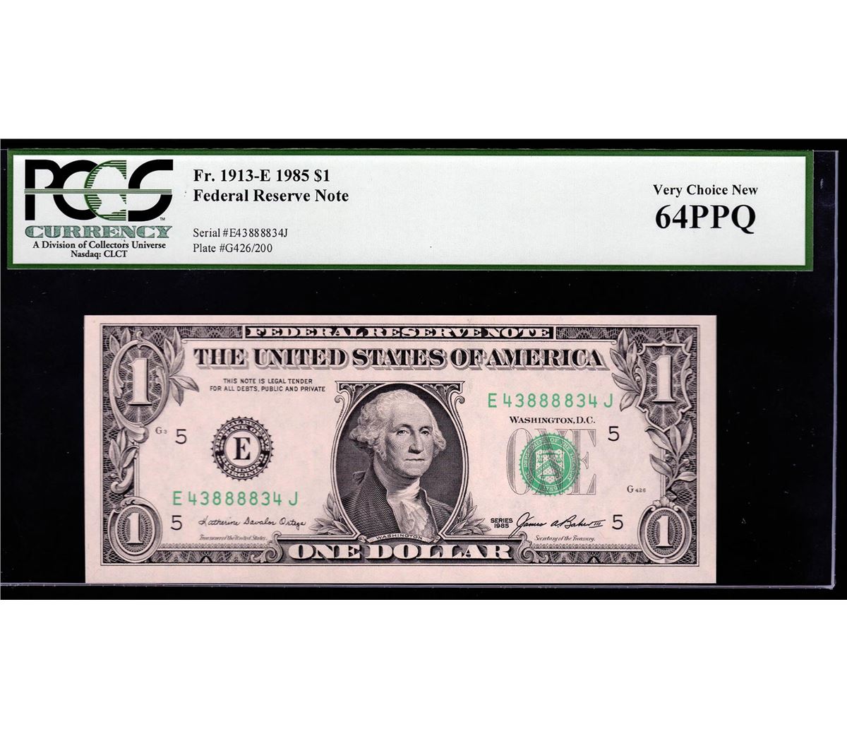 1985 $1 Federal Reserve Note PCGS Very Choice New 64PPQ RADAR Serial