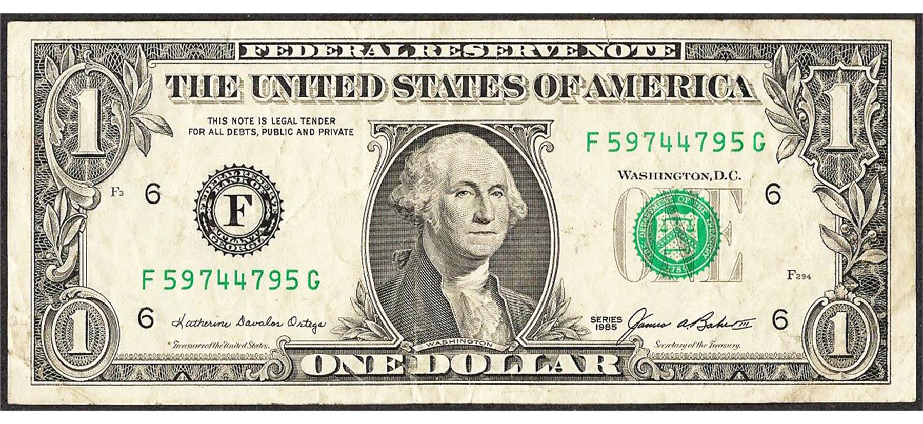 One 1985 $1 Federal Reserve Note Radar Serial Number.