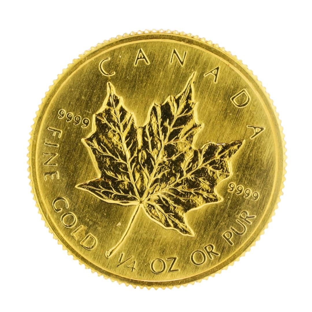 One 1985 $10 Canada Maples Leaf 1/4 oz. Gold Coin.