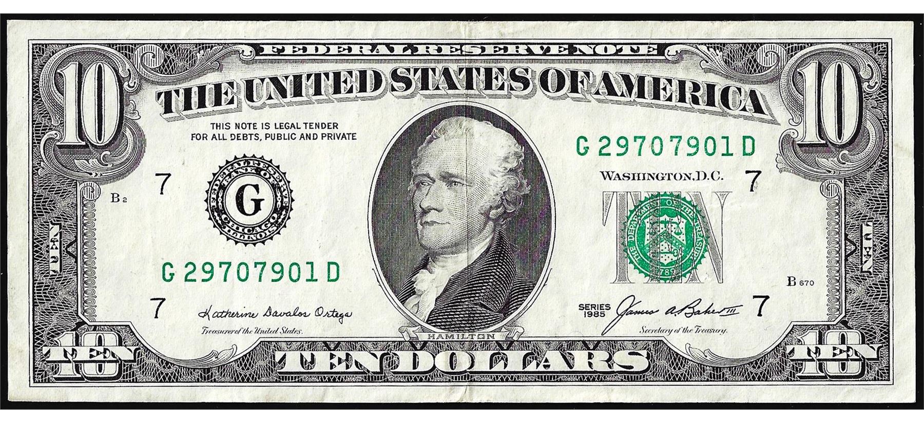One 1985 $10 Federal Reserve Note Full Offset ERROR.