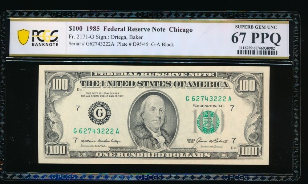 One 1985 $100 Chicago FRBN PCGS 67PPQ.