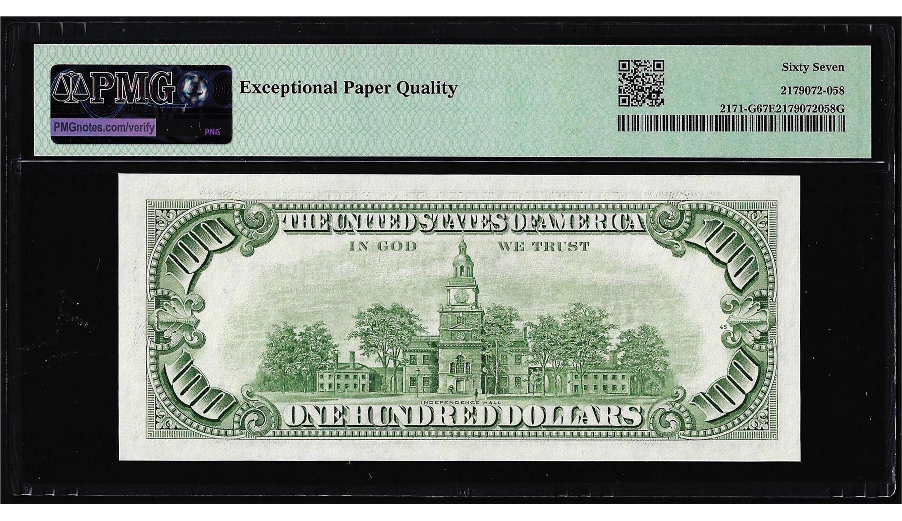 1985 $100 Federal Reserve Note Chicago Fr.2171-G PMG Gem Unc 67EPQ