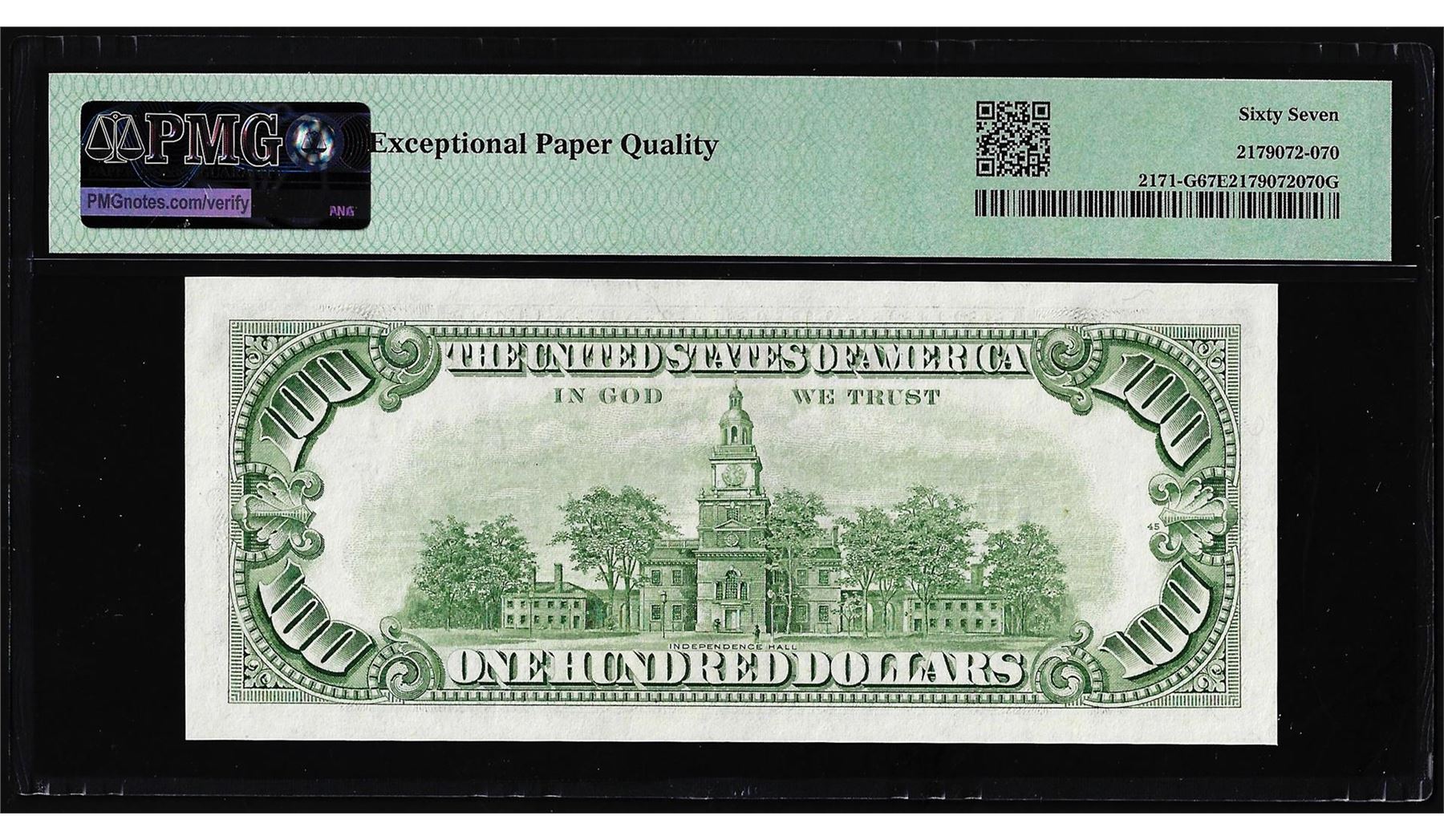 1985 $100 Federal Reserve Note Chicago Fr.2171-G PMG Gem Unc 67EPQ