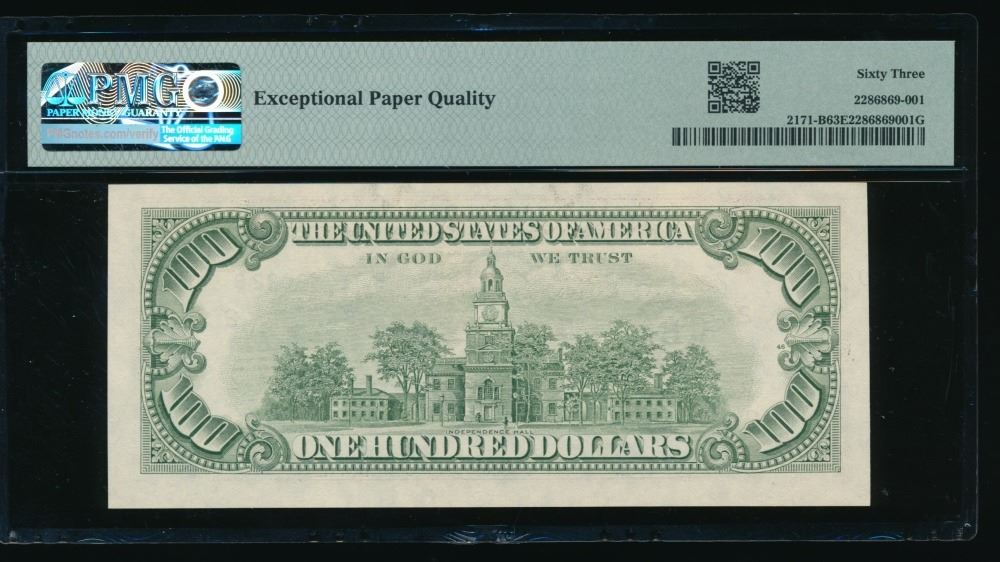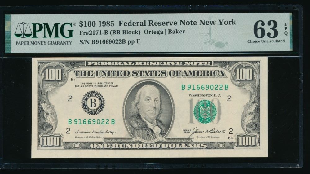 One 1985 $100 New York FRN PMG 63EPQ.