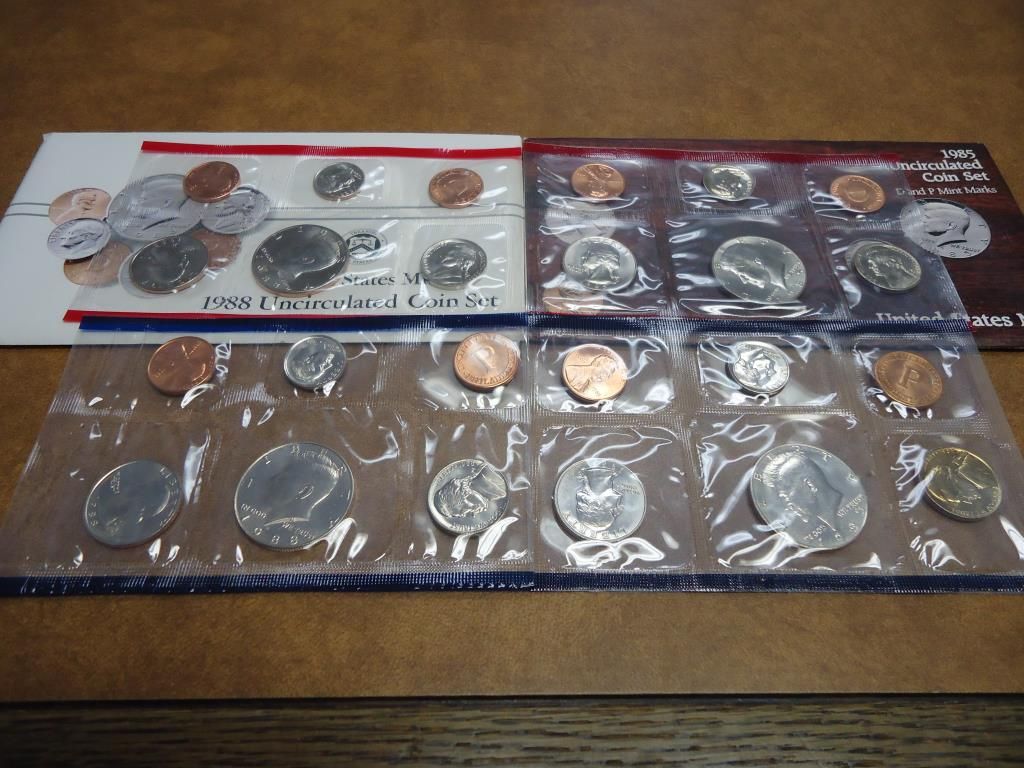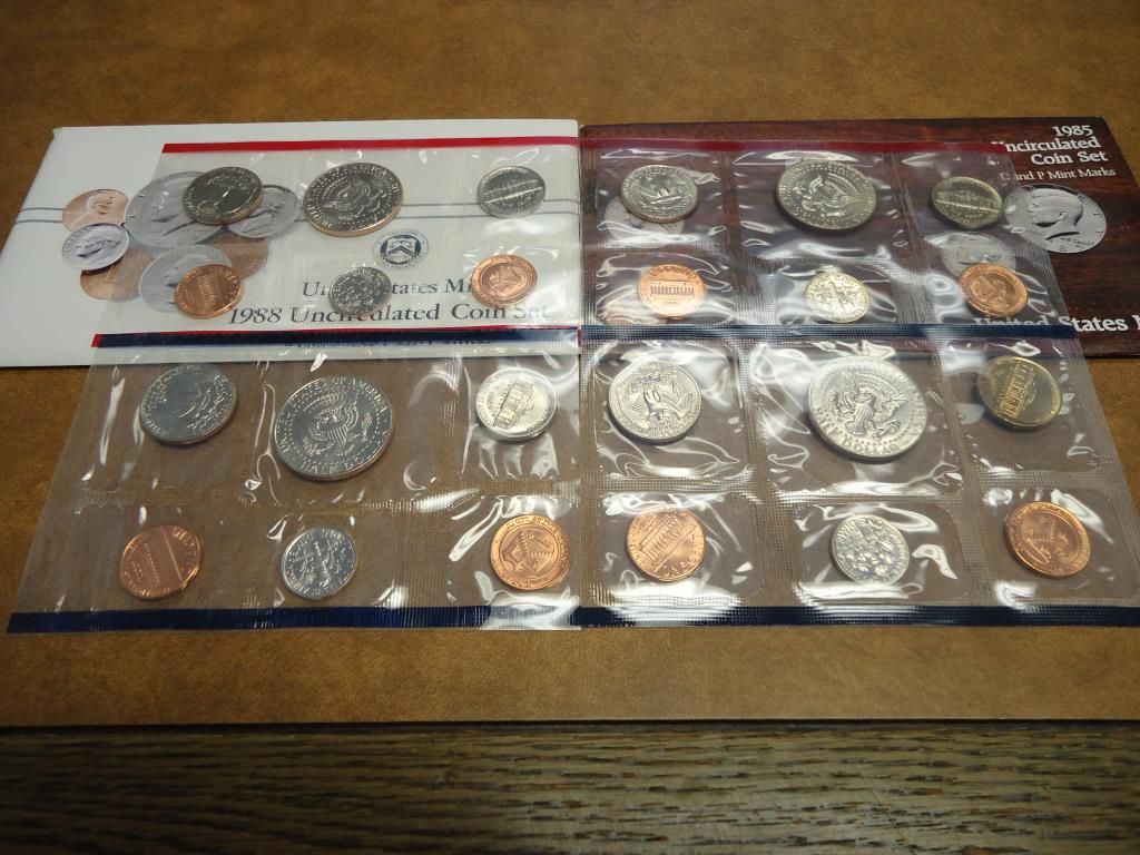 1985 & 1988 US MINT SETS P/D (WITH ENVELOPES)