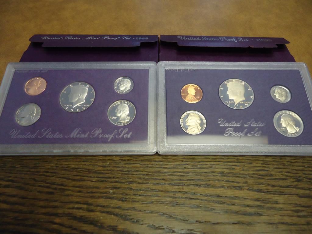 1985 & 1988 US PROOF SETS (WITH BOXES)
