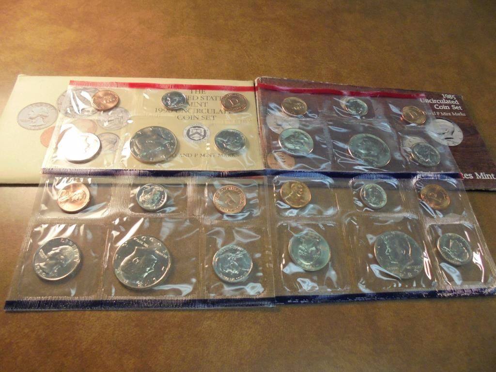 1985 & 1990 US MINT SETS P/D (WITH ENVELOPES)