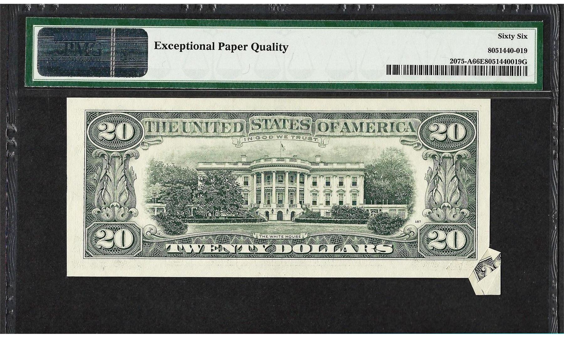 1985 $20 Federal Reserve Note Butterfly Fold ERROR PMG Gem Uncirculated 66EPQ
