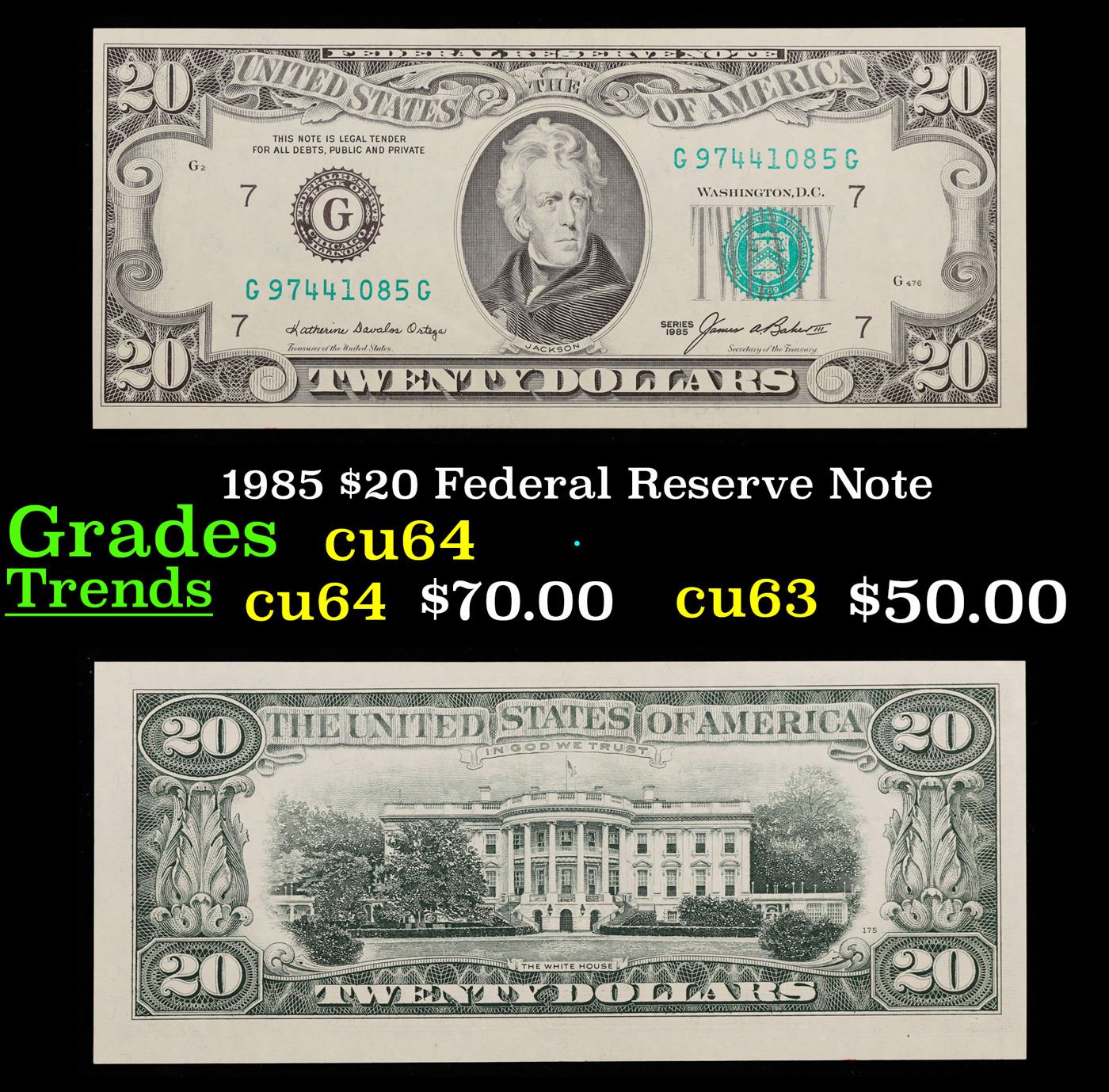 1985 $20 Federal Reserve Note Grades Choice CU.