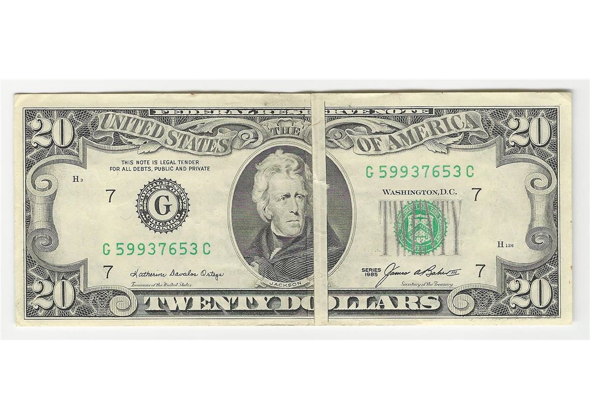 One 1985 $20 Federal Reserve Note Large Gutterfold ERROR.