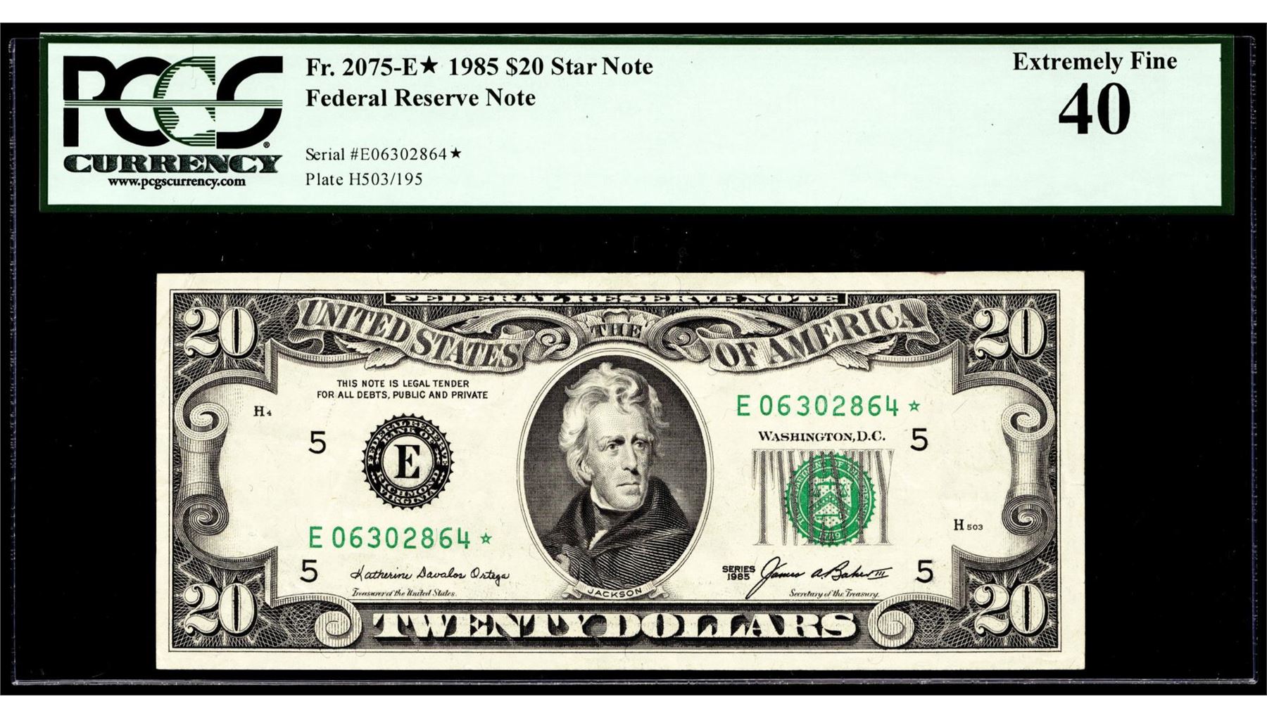 One 1985 $20 Federal Reserve STAR Note Richmond Fr.2075-E* PCGS Extremely Fine 40. PCGS Graded.